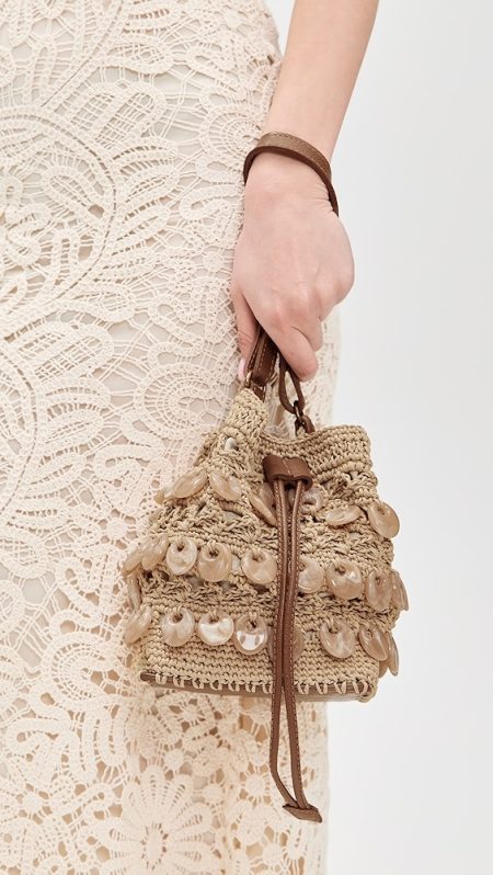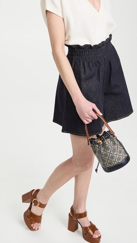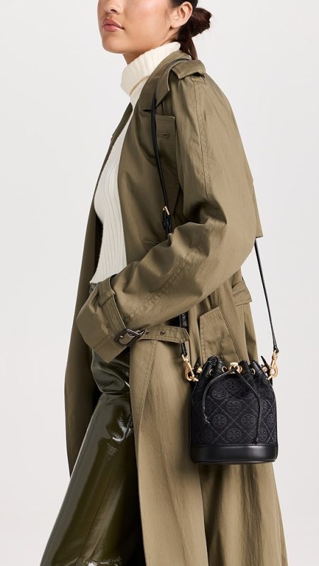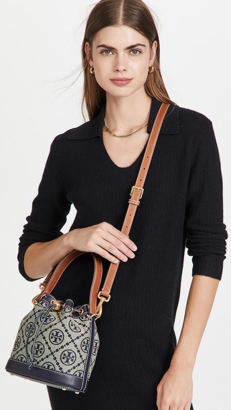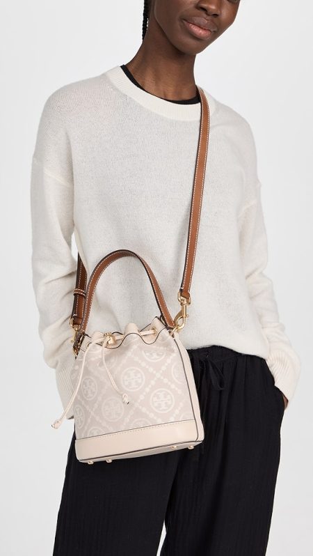 $218.00Fabric: Jacquard Monogram pattern Leather trim Gold-toned hardware Drawstring closure Optional, adjustable shoulder strap Textile lining Weight: 11oz / 0.31kg Imported, China Style #TORYB49310 A scaled-down Tory Burch bucket bag, detailed with a rendition of the label's monogram for a polished and eye-catching look. Two shades of leather trim lend…